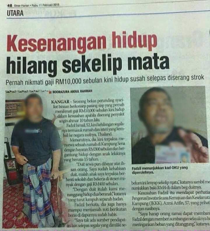Walaupun ada NGO yang datang membantu tetapi ia perlukan masa yang panjang untuk kumpulkan jumlah yang besar begini. Sebenarnya cara yang paling mudah tanpa perlu meminta bantuan adalah dengan mencarum medical card. Secara tak langsung dana kecemasan sebanyak RM2 juta tersedia kika berlaku ujian begini.